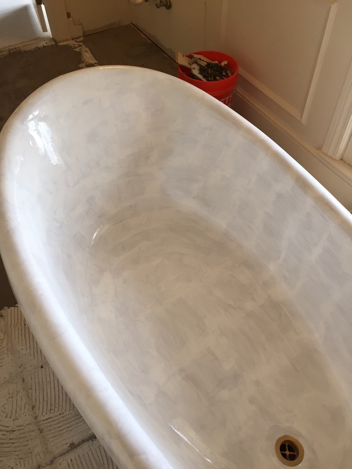 For the tub in the bathroom- the biscuit color had to go- so I refinished our tub! Yes, you do NOT have to hire someone to redo your bathroom, just get this awesome product and go to town!